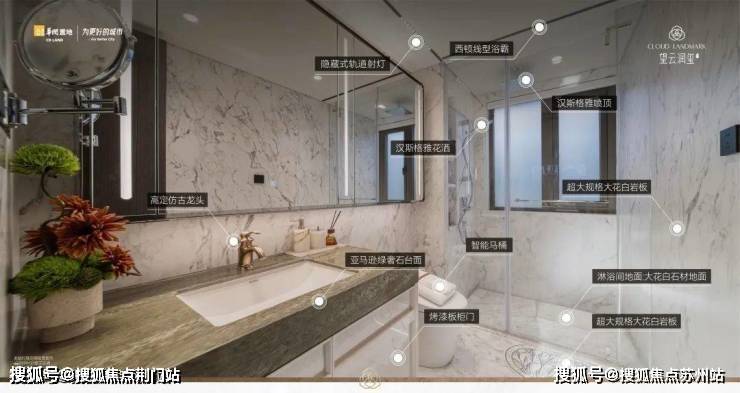 还不止,大到豪宅才有的嵌入式冰箱,小到顶喷花洒、主卧镜柜里的美妆冰箱等,都是交付标准,就连次卫也首次配置上了智能马桶;不断映入你眼帘的,还有各种木饰面、奢石、岩板,以及定制款龙头、门把手.....