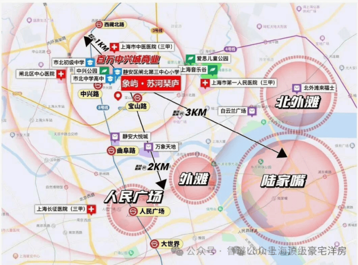 全龄优质教育链500 米范围内有育婴堂幼儿园、永兴路二小,1 公里内覆盖市重点静安实验小学、市北初级中学,全龄段三甲医院护航3 公里内集聚上海市中医医院、第十人民医院等 6 所三甲医院,搭配社区卫生服务中心,构建 “日常诊疗 + 大病救治” 的全方位健康保障体系。