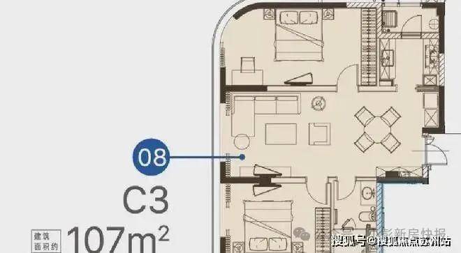 建面约107㎡2房2厅1卫
