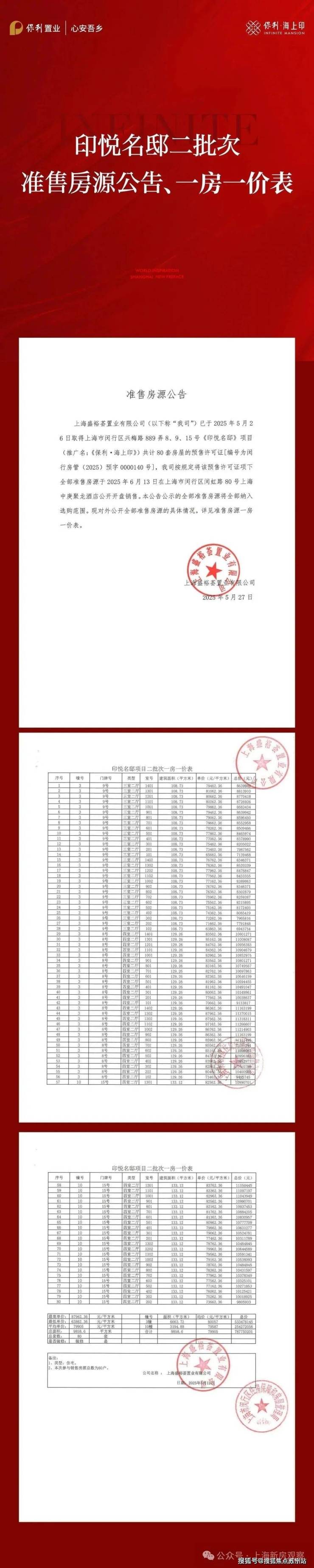 据了解,保利置业梅陇项目「保利·海上印」项目三批即将加推建面约108-149㎡3-4房;上期均价79905元/㎡!预计7月开放实景示范区!想上车的朋友抓紧关注,别错过下一轮红利窗口!全部一梯两户无连廊,所有户型层高均为3.1米;约1500㎡下沉会所+约1400㎡架空层等社区高阶配置;售楼处线上火热预约中!