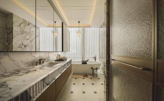 此外,卧室、卫生间这些空间,从材质对碰到光影设计,都进一步强化了“酒店式生活”的场景感,突出一个松弛+私密感。