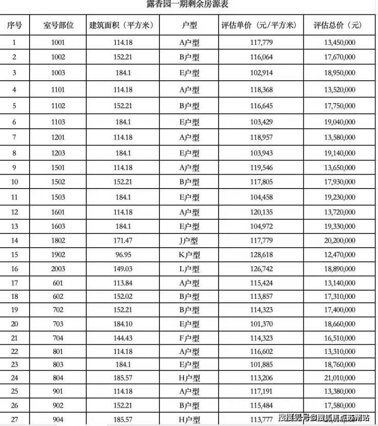 最新一房一价表: