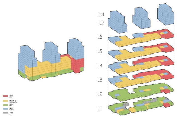 2-4号楼(洛克·安仁)体块功能分析©ARQ建筑事务所