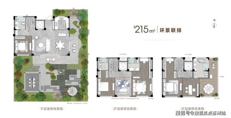 四季听澜,近距阳澄湖西岸、学府公园、玉兰公园,坐享三面环水的天赋宜居谧境。约1.05的超低容积率,让四季之景于诗意园林内自由盛放,墅居游逛松弛感油然而生。 ▲合院效果图 ▲联排效果图 ▲叠加效果图