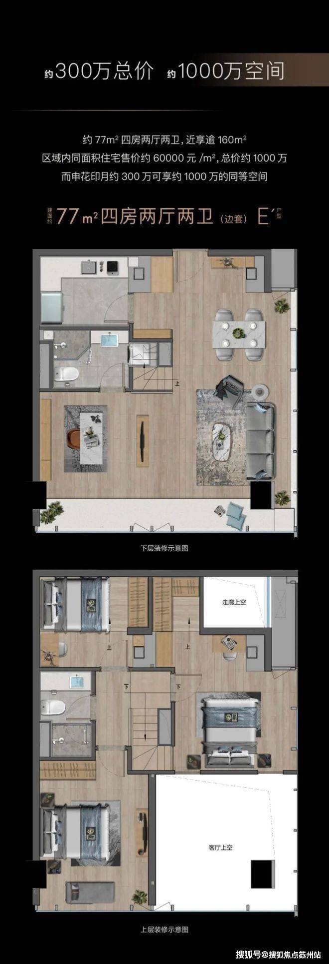 约77/85㎡ 4.79米四房两厅两卫跃墅