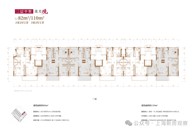 项目主打3层的超低密洋房产品,另有3套联排产品,户型类型丰富;洋房为创新的多层退台式洋房,层高高于传统常规洋房产品,3.3-3.6m层高对标别墅产品层高。