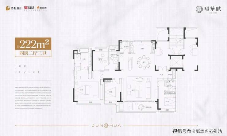 珺华赋的户型设计非常人性化,从152㎡到222㎡不等,满足不同家庭的需求。以下是几个经典户型的介绍: