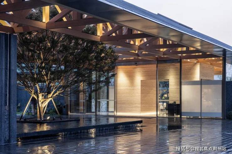 入口处的精心布局、中心水院的曲水流觞,再到宅间小径的绿意盎然,最终延伸至烟波浩渺的龙湫湖畔.项目以“水”为设计灵魂,巧妙将东方美学与现代建筑相融合,打造出一条连贯的水岸生活轴线——诠释着当代江南水岸生活的新范式.