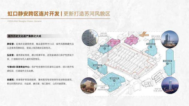 弘安里的北侧的静安里,上海静安里,汲取新天地、张园等城市节点级风貌商业精髓,精心规划沿武进路历史风貌商业街区,展示体验在地文化,打造高端零售、高档餐饮、文化展览等丰富业态的商业格局,再融入弘安里和静安里的成片风貌区,未来这里将成为上海的新里天地!东侧的18街坊,就是崇邦集团商办综合体。总建筑面积达29万㎡,其中包括约11万㎡的新建商业设施,10万㎡的超高层办公楼,目前已投入使用。西侧则是安康苑和龙盛湾上打造的超高层住宅和高能级商业。