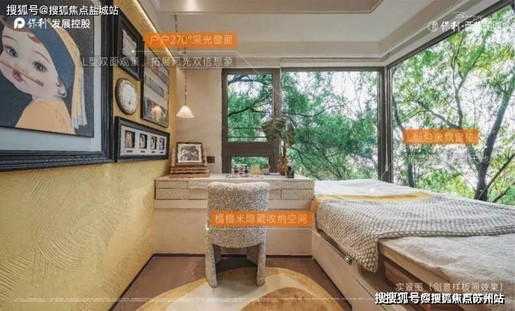 次卧实现270°L型飘窗,双向窗户采光,可以轻松拓展出书桌及收纳空间,尺度感非常不错。