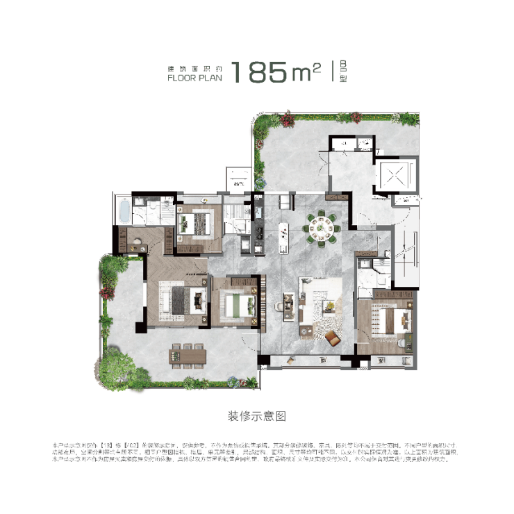 高得房率:得房率约120%,部分户型赠送面积近50㎡,空间非常奢侈。