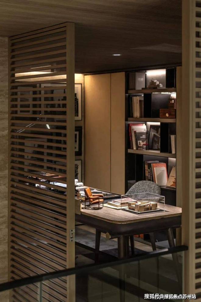 在空间设计中,景观相互映衬,各个区域的形态都是空间格局相互作用的精妙结果。在确保居住私密性的基础上,设计师注重设计的渗透力,巧妙运用百叶窗、镂空隔断等元素,使各个空间在视觉上相互穿透、层次叠加,以独特的设计手法营造出一种家的“大一统”氛围,既保证了空间的独立性,又增强了整体的连贯性。