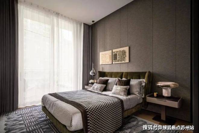 次卧的色调相对更为深邃,设计师通过不同的色彩选择,为静谧的氛围赋予了别样的诠释。有的空间明亮温暖,有的则内敛深沉,各种高品质材料相互搭配,编织出柔软而舒适的触感,再辅以恰到好处的艺术装饰,将空间的高级感提升到新的高度。