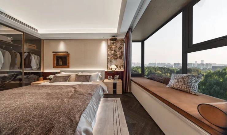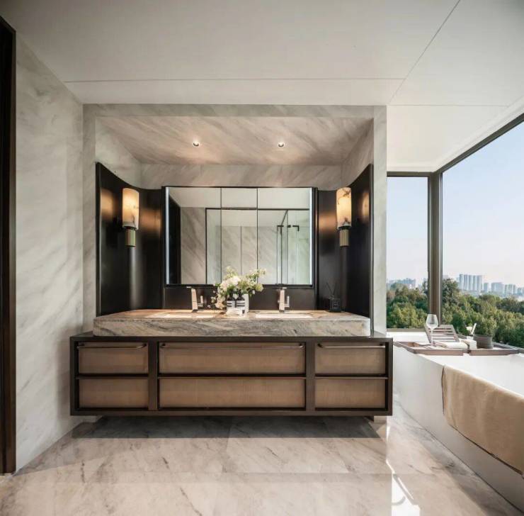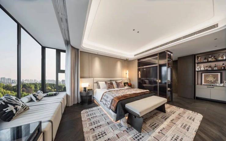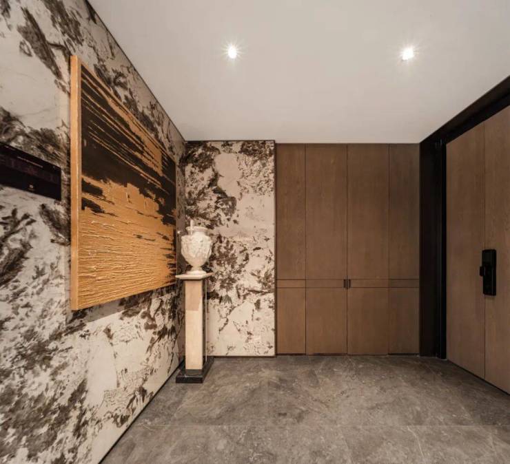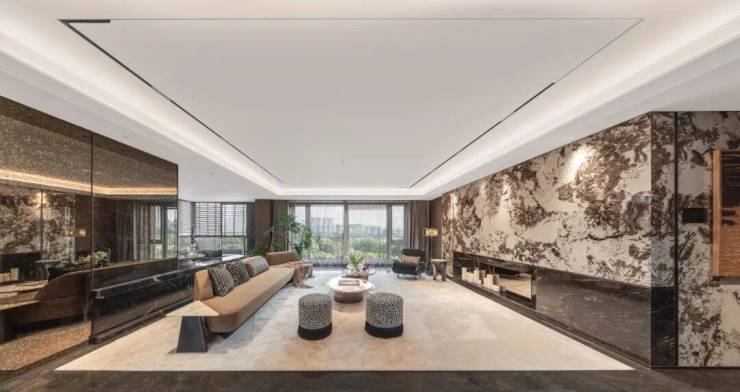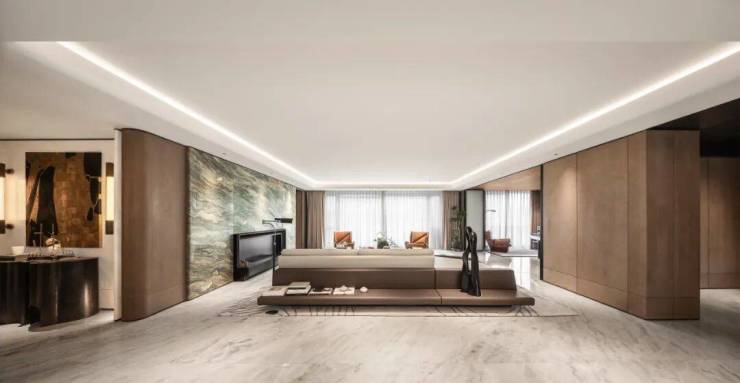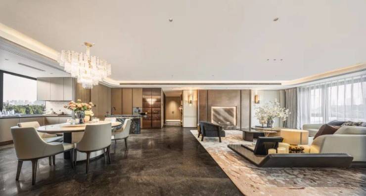 以木色为主色调打造,营造出了矜贵、艺术、电影感的空间氛围。样板间丰富臻装材质与品牌使用,平衡空间的奢华与舒适性,让居住始终以人为本,契合高阶人群审美与生活习惯,引领居者进入一个前所未有的生活美学新境界。