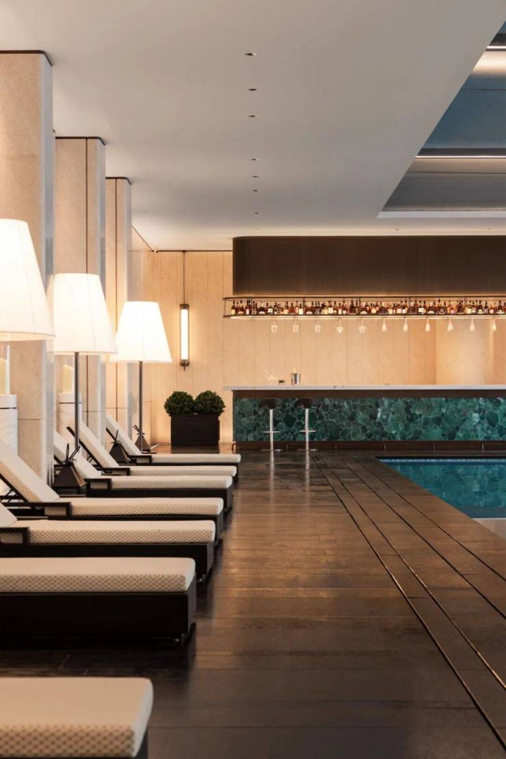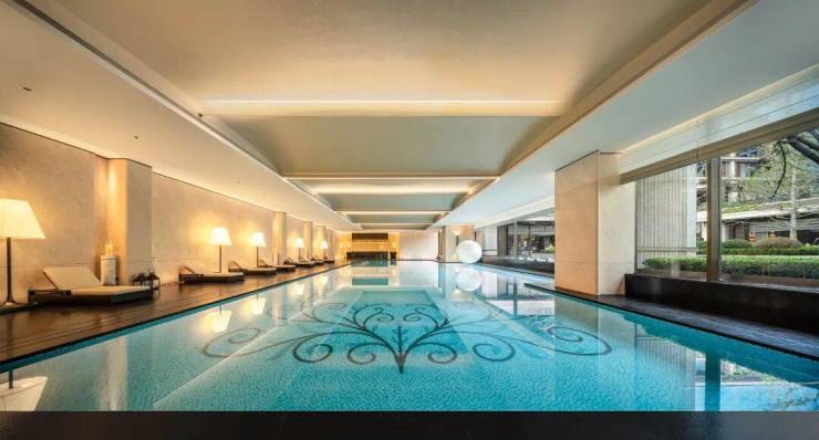 以孔雀石的翠绿光泽,融合进泳池高雅璀璨。自在畅游间,邂逅山茶的清雅,仿佛潜入内心的神秘梦境,尽享身心舒缓与感官愉悦。