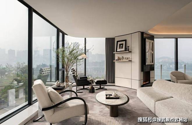 在这开阔而明媚的大平层空间里,270°的超大全景采光面如同一扇巨幅的画卷,将室外的绮丽景致无缝融入室内,让自然光线毫无拘束地自由穿梭。我们将沙发面向这无垠的窗景安置,让身心得以最大限度地沉浸在这份视觉盛宴之中。