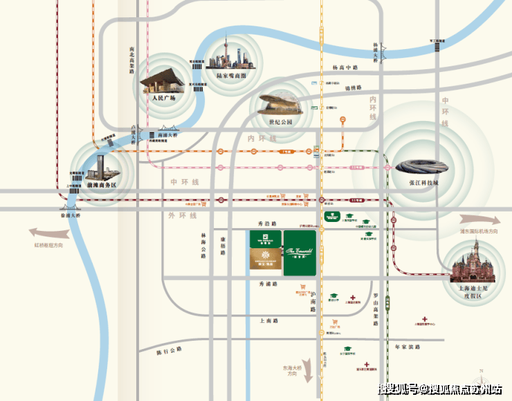 轨道交通方面:项目距离外环约1.5km,东侧紧邻沪南公路和在建的18号线(预计2020年通车)首先康桥东接迪士尼国际旅游度假区,北接联洋世纪公园,距离陆家嘴约12公里。