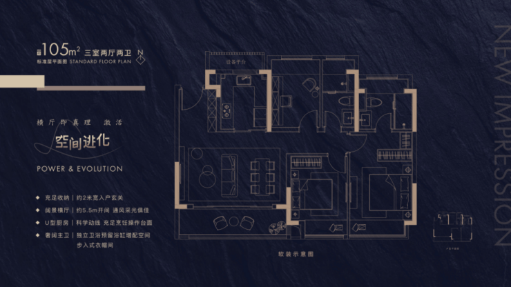 产品设计:全横厅进阶户型,超高窗地比(约75%-78%得房率)