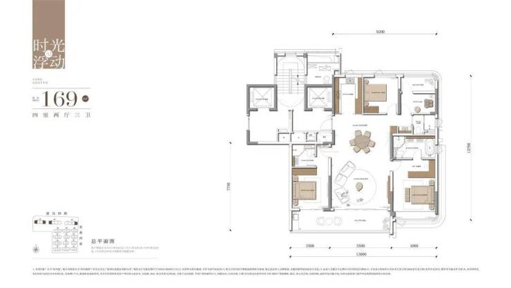 各个功能间尺度的全面升级。仅169方就做到了南向面宽约13米,双联的超宽阳台进深约2米......的超级尺度。