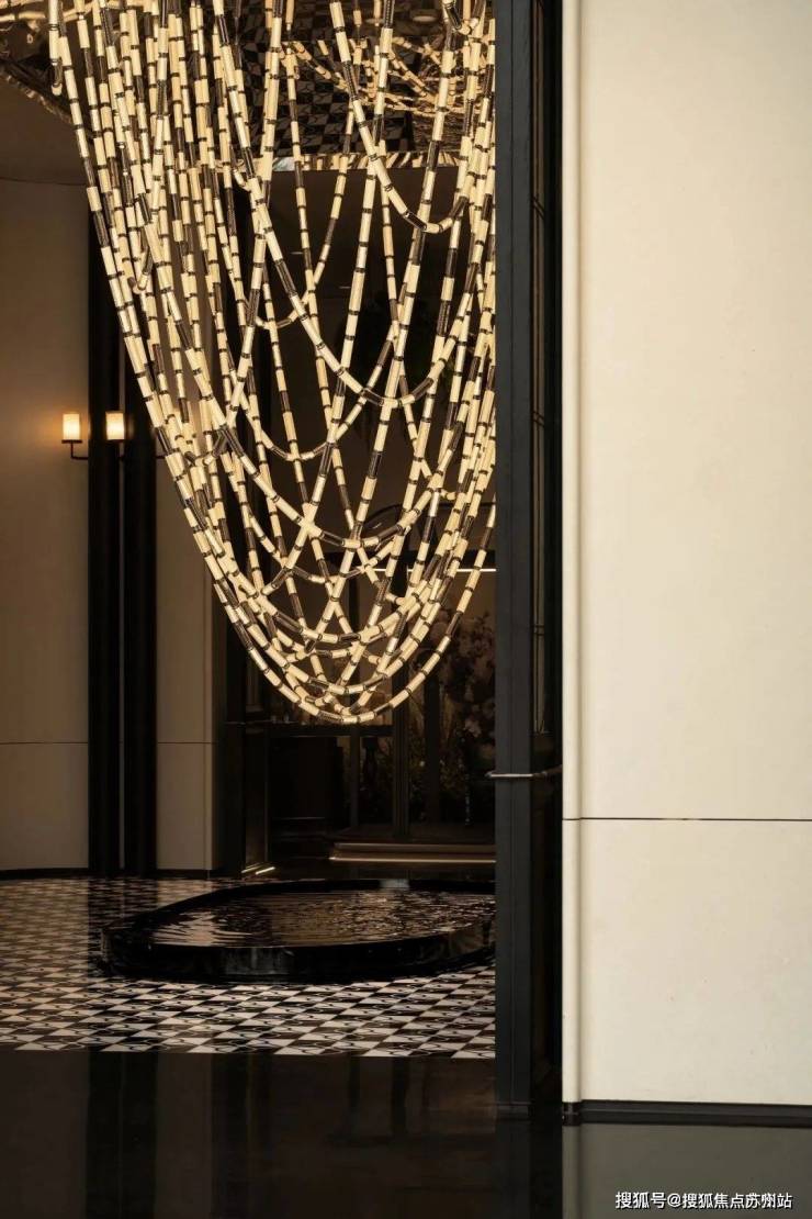 经纬交织,月映千年。绛丝工艺被应用于空间的吊灯之中,设计师力图通过非遗传统,不生硬地创建时间与空间的相对关系, 突破经典设计中对于历史的平铺直叙。
