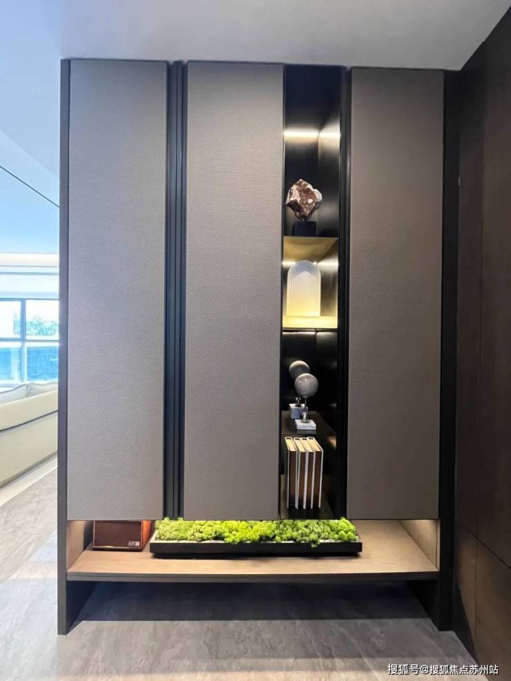 同时精装颜值和细节控全域满足,入户门配置——头部大牌 春天/新多的装甲铸铝子母门,五合一自带猫眼。可连入室内智能系统,设置多种归家模式。
