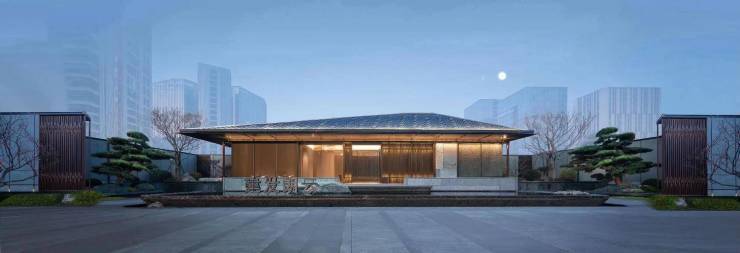 建筑风格:现代东方风格外立面,搭配江南园林景观示范区