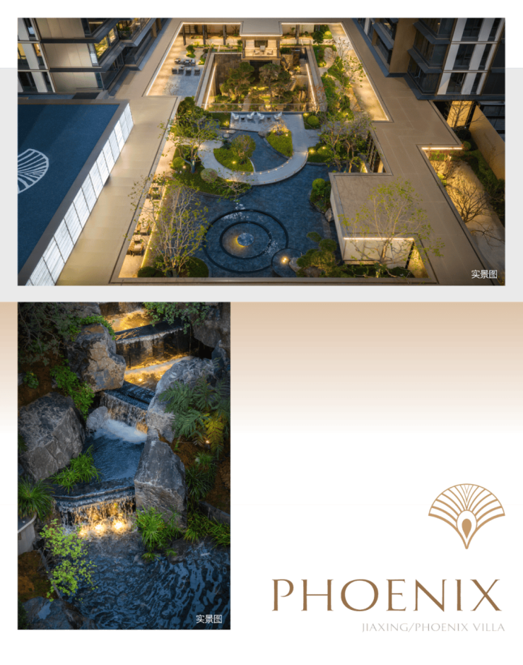 园林取法《园冶》造园哲学,创新打造立体山水庭园,将自然高差转化为景观层次,形成步移景异、可游可赏的沉浸式体验。而 “凤仪四境”归家礼序,更是将自然意趣与东方礼仪相融,将归家体验升华为一场心灵仪式: