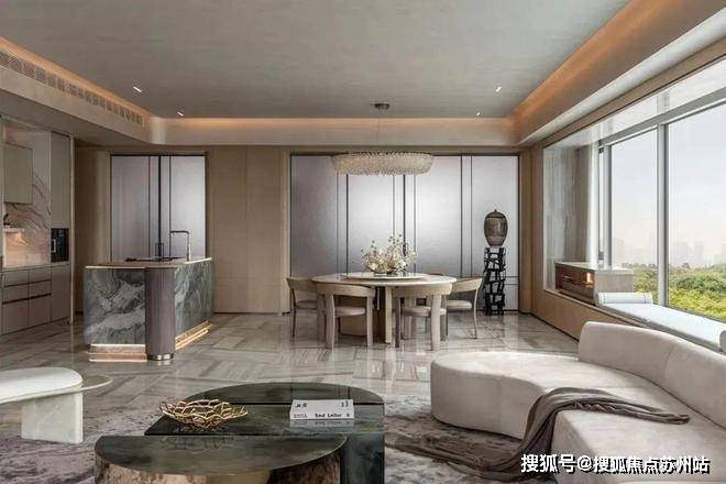 进入实景展示区,映入眼帘的便是充满意蕴的美学建筑。传承千年苏州美学,将苏式框景、粉墨江南等经典元素融合于立面设计,大尺寸栏板玻璃+铝板+石材+真石漆的组合,营造尽可能大的采光和视野,建筑立面熠熠生辉。