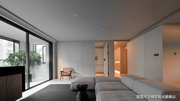 客厅外部带有一座阳台,源源不断地向室内输送清风、暖阳,外界的气息与家的静好氛围亲密交融,空间的流通性进而变得更强.谁说极简空间注定一成不变?心性活络,生活当然会更加有趣.