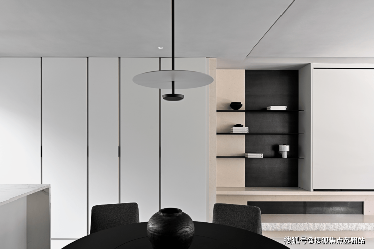 墙面棱角与家具线条直接简练,严谨的秩序中略有灵动之意.家正在理性与感性直接反复拉伸,温暖诠释着“容器”的意义——盛放时间,包容记忆,链接未来.