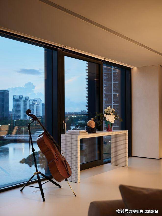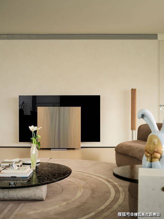 峰度天下售楼处电话:400-8123-664客厅的组合简单却又唯美,一台B&O的电视,一部钢琴,还有一套女业主喜欢的BAXTER沙发。