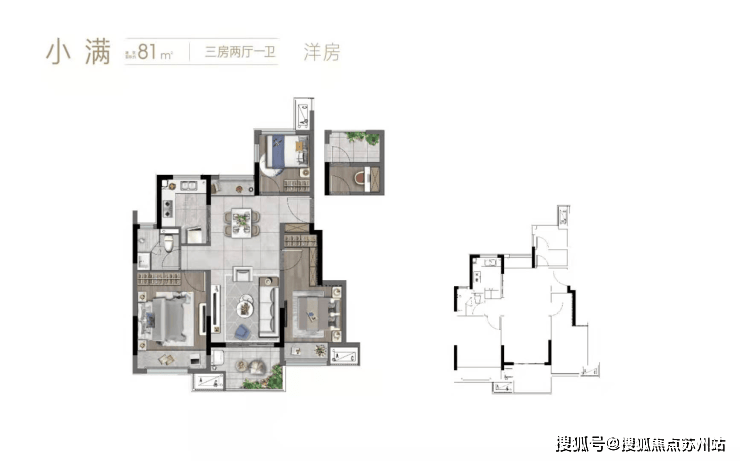 81㎡三居:总价 123万-130万起,三开间朝南,南北双阳台设计