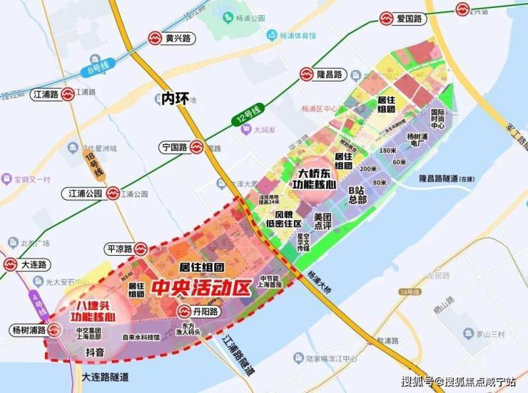 大桥东功能核心汇聚了杨浦滨江更多的超高层建筑群,拥有美团、哔哩哔哩、星空华文传媒总部、国际时尚中心、杨树浦电厂旧改项目等地标产业&建筑。
