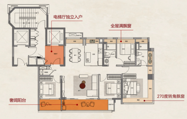 类一梯一户:实现电梯厅独立入户,既享受到市区千万豪宅级的尊崇归家体验,更能拥有超实用的私享拓展空间.