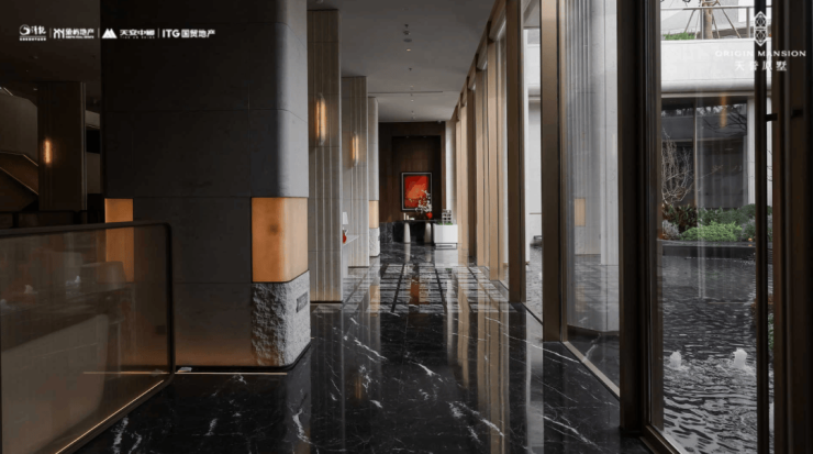 高定下沉庭院:步入大堂,一道近10米高的金属挂帘流水瀑布倾泻而下,与地面静水相连,动静之间,气势与雅趣共生.旋即映入眼帘的,便是精心打造的下沉式会所.