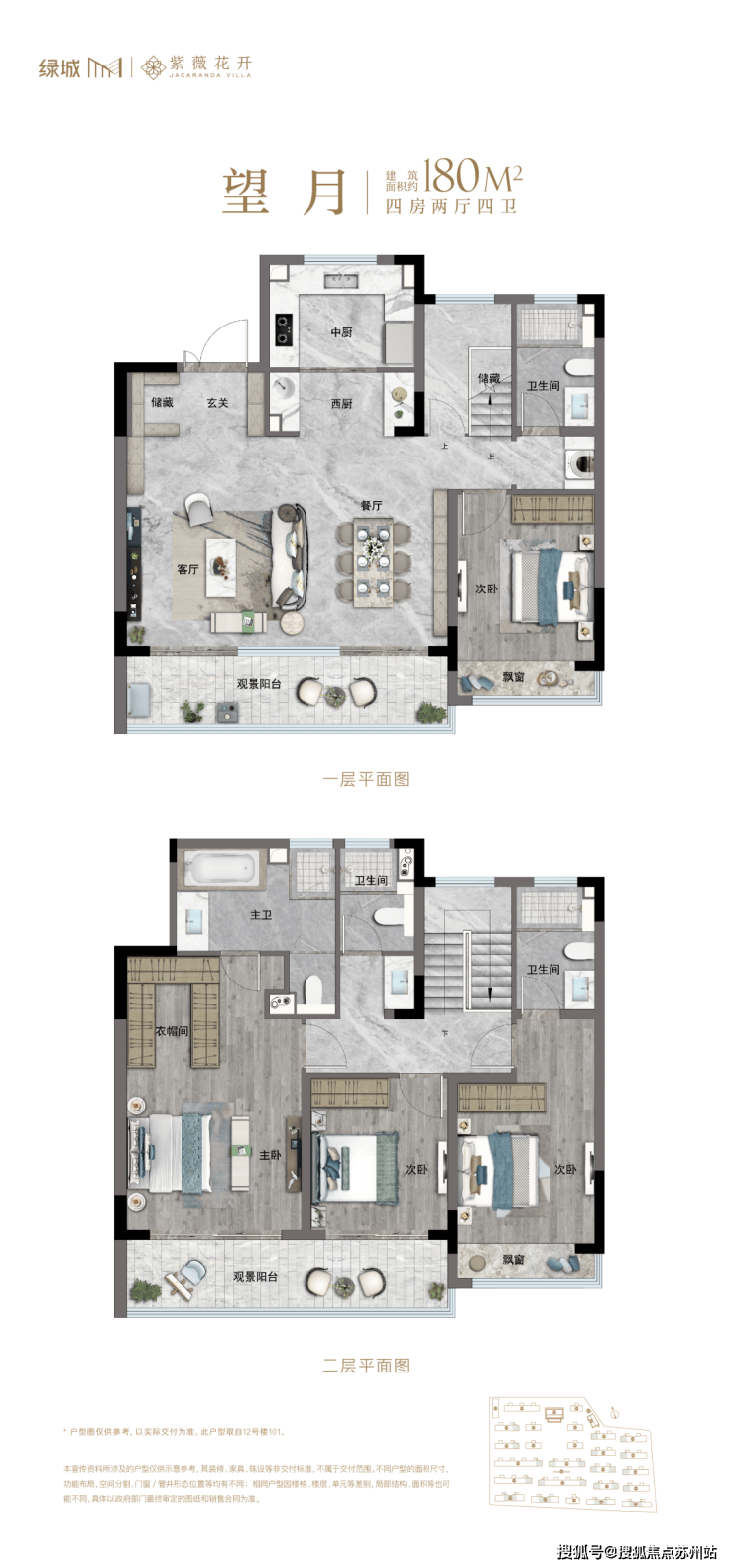 建筑面积约180㎡,4室4卫▼