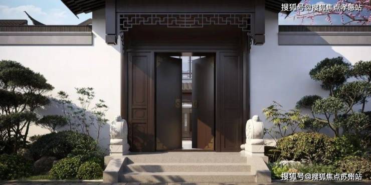 门前一对抱鼓石,推开铜环双开门就是家。滴水檐瓦,全依古法,还原每一个繁复的构件。