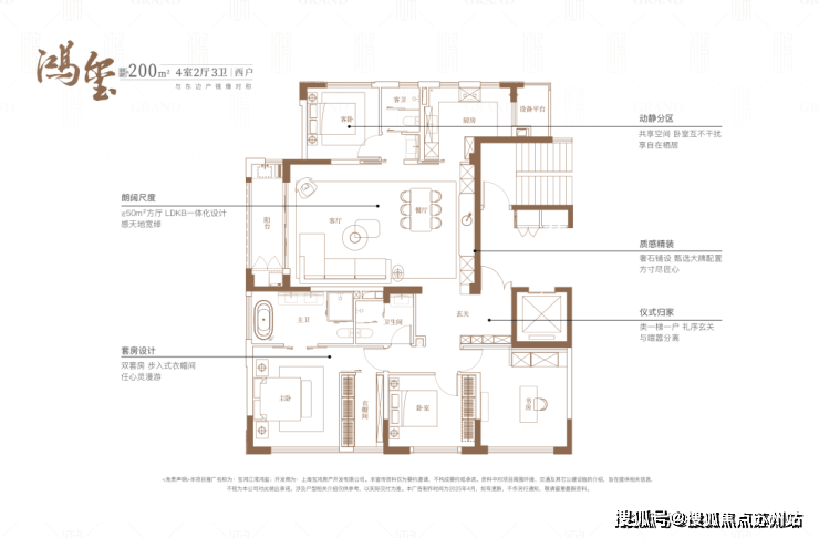 而在江湾鸿玺纯200平户型尺度下,舒适度完全拉满。双套房+次卧+书房设计,近50平方厅布局,给三代同堂的家庭生活真正的体面。动区、静区互补干扰,主卧与次卧,皆有私属独卫空间,再没有百平三房的逼仄。