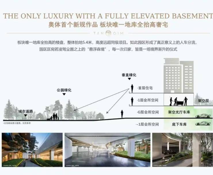 第二重惊喜,对比此前的老项目,保利天珺带来了创新前沿的设计:是奥体首个新规整体抬地产品,这在奥体前所未有。