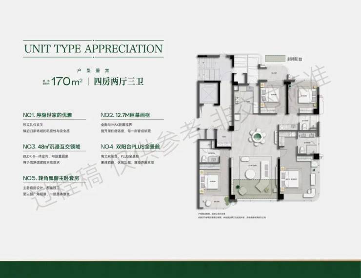 除了阳台外,项目户型设计还有很多出彩的地方,主力建面约170-200-220-240-270方,下面我们先来看首开的高层户型: