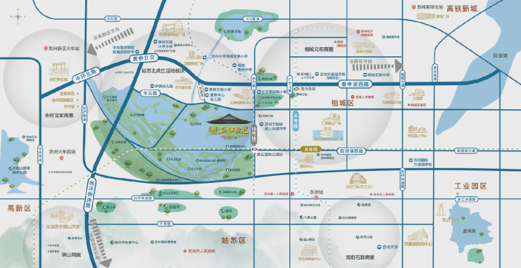 项目地处三区交汇的芯脏位置,享受的是三区的繁华叠加。周边商圈云集,从大悦城到永旺梦乐城,购物休闲选择丰富;全龄段优质教育资源环伺;去苏大附一院等医院也很方便。交通更是四通八达,紧邻高铁北站和多条城市主干道,无论市内通勤还是长三角出行都高效便捷,其地段价值和相城高端楼盘的潜力不言而喻。