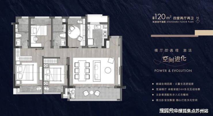 建筑面积约102-143㎡进阶户型带来全生命周期的舒居空间,全横厅设计诠释大尺度场景,阔境阳台、主卧套房设计,配备有独立卫生间和衣帽间,满足面面俱到的理想人居。
