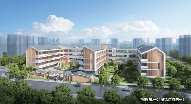 此外,规划有多块商办、文化商业用地,整个区域内有2所幼儿园、1所小学、1所初中的教育设施,其中新建小学办学规模按30班设置,新建初级中学办学规模按24班设置,效果图如下。