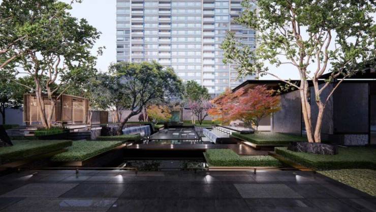 严选皇家御用的极品黑山石,辅以近1000㎡中央水系,营造极具东方禅意的松石之境,描绘一园·三心·五悦·九雅的诗意画卷。