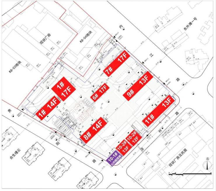 根据设计方案显示,地块拟建7栋高层,总高13-17层,6号楼和8号楼一层全部架空,1号楼部分架空,其余楼栋没有架空层。