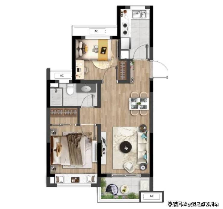 -**74㎡两房**:全明设计,独立玄关+LDK客餐厨一体,动静分区,兼顾私密与实用。