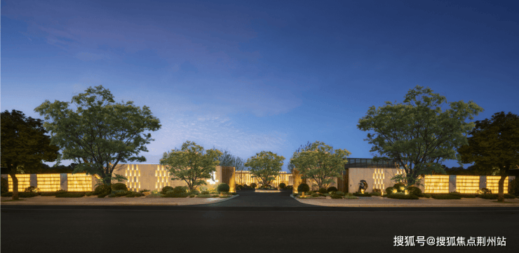 社区大门极具象征意义——不同于传统豪宅强调的恢弘高门,晋墅将门头内移,入口开口控制在10米,墙高4米,配合70米长的景墙,构建出尊贵却不张扬的归家前场。