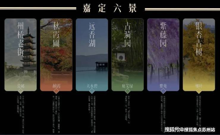 建筑们围合出的中心花园中,州桥老街、秋霞圃、远香湖、古猗园、紫藤园、银杏古树等嘉定6景被南山地产提炼、转译,形成了具有在地文化特色的6大景观主题空间。