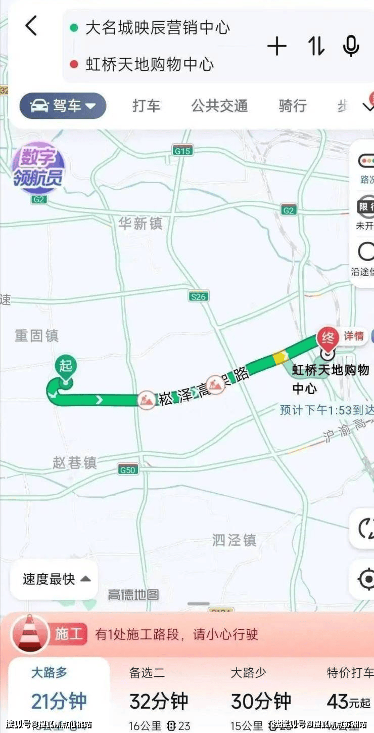 第二看交通,大名城映辰距离崧泽高架赵重公路出口1.4公里,开车经崧泽高架,约20分钟直达虹桥枢纽。