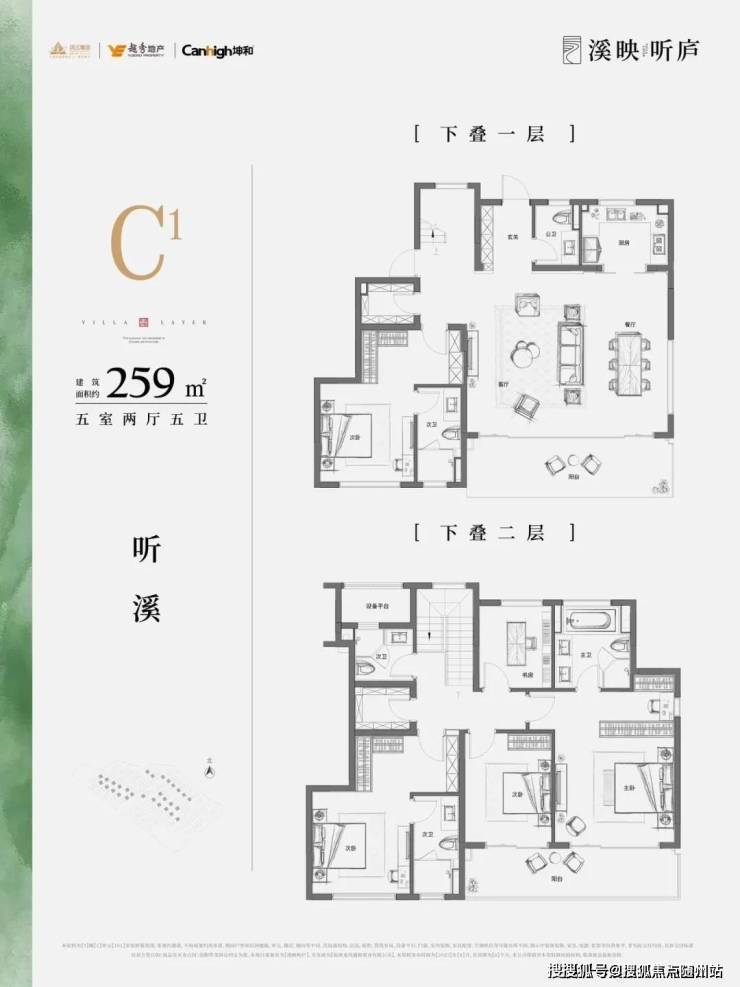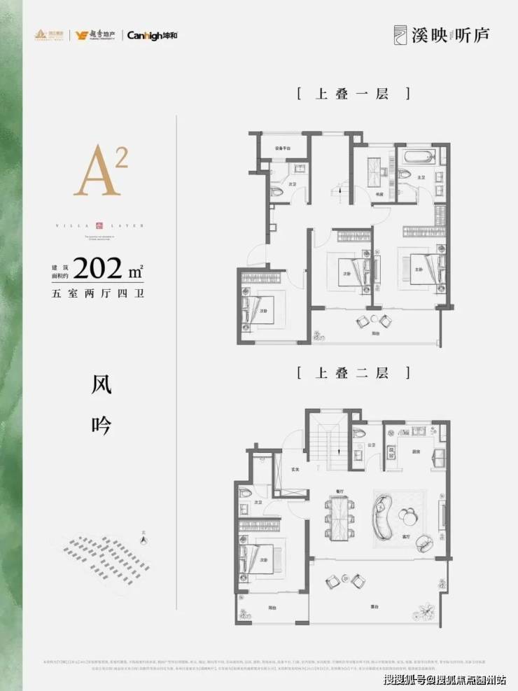 :主力户型为建面约200-260平方米的叠墅,包含5室2厅设计,南北通透,动静分离。